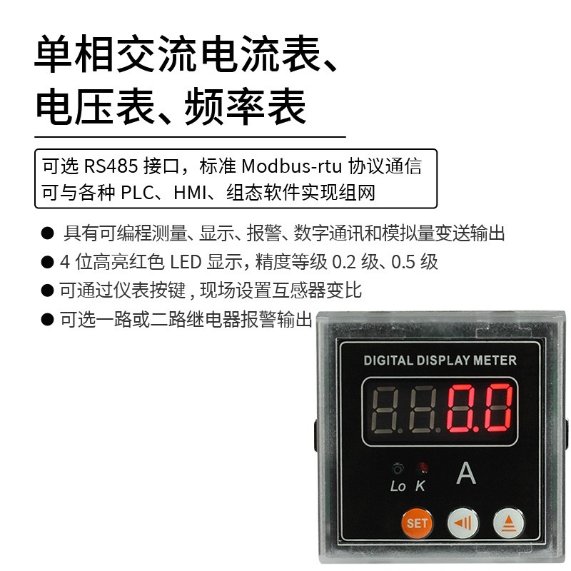 194系列數(shù)顯單相交流電流表、電壓表、頻率表,是一種具有可編程測量、顯示、報(bào)警、數(shù)字通訊和模擬量變送輸出等功能的智能儀表,廣泛應(yīng)用變電站自動(dòng)化、配電自動(dòng)化、智能建筑、自動(dòng)化生產(chǎn)線、測試臺(tái)等。真有效值測量,精度高,穩(wěn)定性好。互感器變比可通過儀表按鍵現(xiàn)場設(shè)置,使用方便靈活。