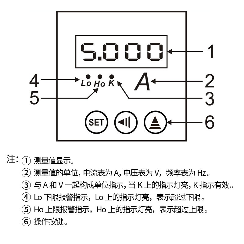 ③、與A和V一起構(gòu)成單位指示,當(dāng)K上的指示燈亮亮,代表K指示有效。
