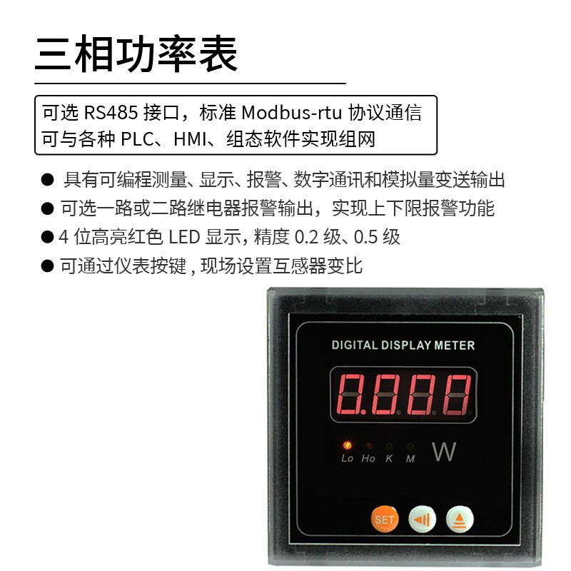 HY194系列數(shù)顯三相交流功率表,是一種具有可編程測量、顯示、報警、數(shù)字通訊和模擬量變送輸出等功能的智能儀表,廣泛應(yīng)用于變電站自動化、配電自動化、智能建筑、自動化生產(chǎn)線、測試臺等。互感器變比可通過儀表按鍵現(xiàn)場設(shè)置,使用方便靈活。